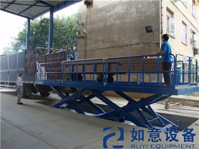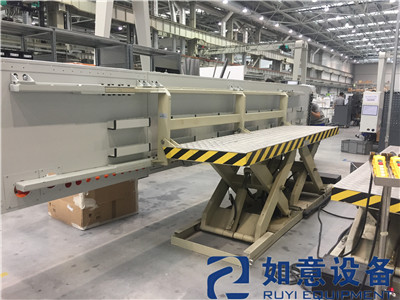 ??大噸位升降平臺是滿足超長或者超重貨物的裝卸。它能通過橫向設計2個或者多叉剪刀臂組合使用,可以保