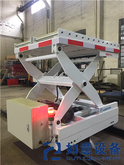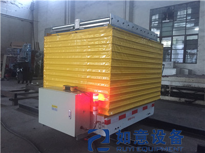 軌道行走升降臺(tái):升降臺(tái)在輕型軌道上電動(dòng)行走,行走電機(jī)用SEW無級(jí)調(diào)速減速電機(jī),行走速度可調(diào),中間任意位置可停